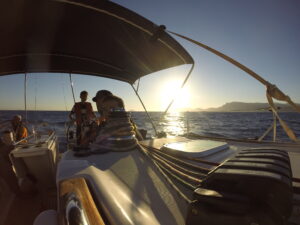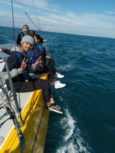 Comme nous l’appréhendons dans nos pratiques professionnelles, les personnes accompagnées peuvent vivre un parcours chaotique qui peut expliquer pour partie leurs problématiques, leurs passages à l’acte. Ceci peut être dû à des environnements perturbants, voire pathogènes (famille, amis, groupes de paires). D’autres peuvent subir des situations de handicap plus ou moins invalidantes. Il nous apparaît opportun sur une période plus ou moins longue, ou sur des temps plus ponctuels, de proposer une parenthèse, d’effectuer une pause dans leurs parcours. Il s’agit donc bien de faire une escale, non seulement avec les lieux et les personnes familières (internat, structure d’accueil, éducateurs, soignants, etc…) mais aussi des habitudes, des codes socio-culturels, voire des rituels spécifiques. Cette escale est favorisée par la dimension itinérante de ce voilier, l’éloignement d’avec la côte, la découverte d’un nouvel élément – la mer – et du mode de vie s’y rapportant.
